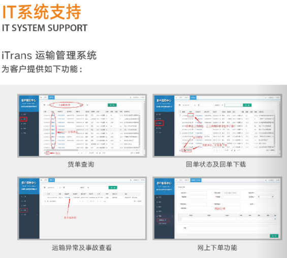 公司利用物流供應鏈管理系統對陸路運輸企業接單、調度、運量確認、回單、費用結算等所有業務環節進行流程化、閉環式的管理;同時實行運輸訂單的執行情況跟蹤管理,信息反饋或客戶通過查詢了解貨物實時信息,從而達到雙方提高運輸管理效率、優化調度計劃,增強企業整體的執行能力